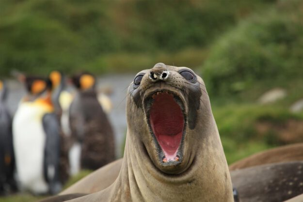 איי ג'ורג'יה הדרומיים הם איים בבעלות בריטית ונתגלו ע"י ג'יימס קוק שהחליט לקרוא להם על שם המלך ג'ורג' השלישי. באיים אין תושבים מקומיים או תושבי קבע, האי הגדול הינו אי הררי שהיה מכוסה קרח בעבר וכיום חלקו הפשיר, 160 קרחונים עדיין מעטרים את ההרים באי וחלקם אף גולשים לים. ההתיישבות הראשונה באי נעשתה לצורך ציד לוויתנים, דובי ים ופילי ים. משחטות לוויתנים חלודות עדיין נמצאות במספר מפרצים באי, עדות לטבח המוני שהתבצע ב 175 אלף לוויתנים באזור זה בלבד. בשנת 1966 הופסק סופית ציד הלוויתנים בג'ורג'יה הדרומית, כיום אוכלוסיית הלוויתנים, דובי הים ופילי הים השתקמה בצורה נפלאה.